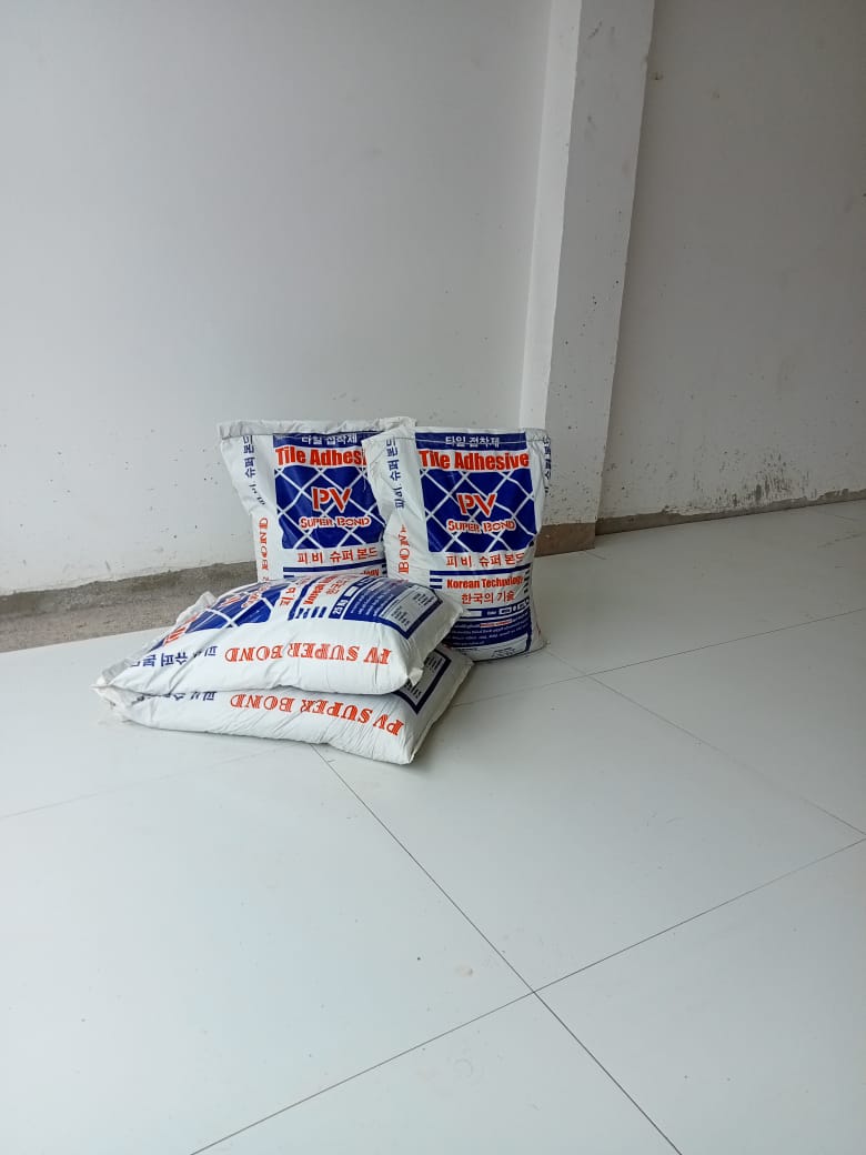 PV Super Bond Tile Adhesive is a ready to mix cementious powder enriched with polymer product. It gives an excellent bond on plaster as well as concrete surfaces making it ideal material for fixing ceramic tiles, vitrified tiles, mosaic tiles and all other floor tiles. Our highly flexible Tile Adhesive ensures less cracks and has excellent waterproofing ability. Only one thin layer of adhesive is sufficient for jointing tiles with good tensile adhesion strength.